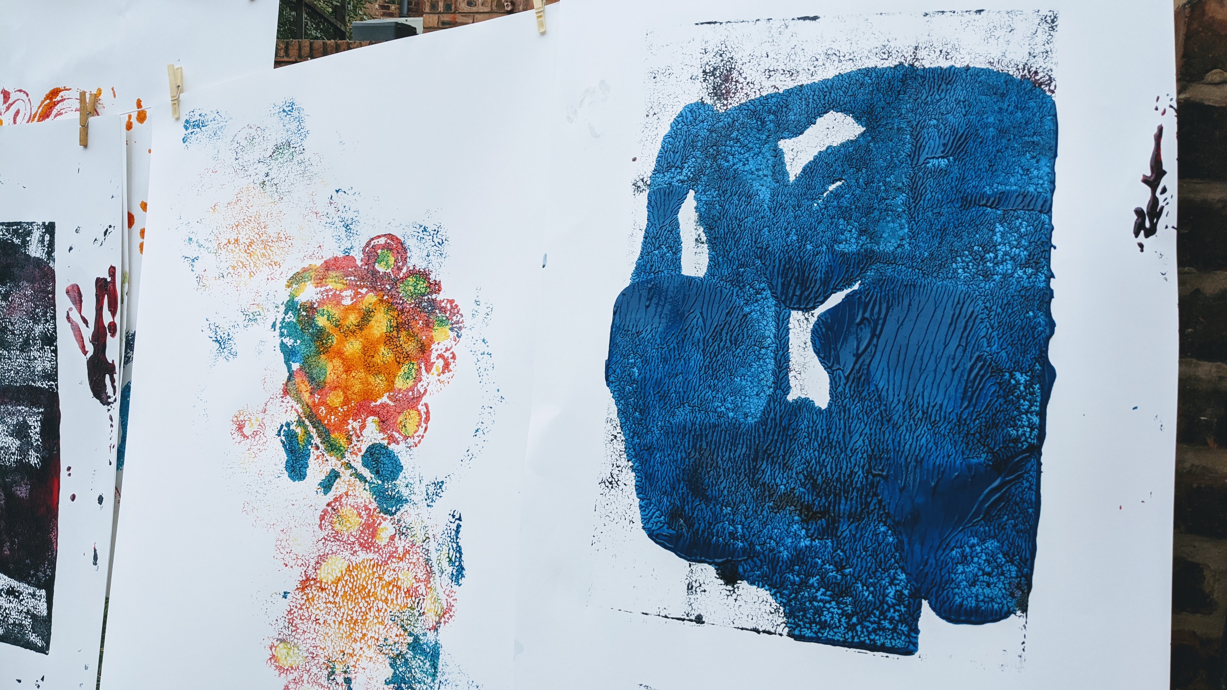 The September Art Club involved creating giant prints using poster paint, polystyrene sheets and large cartridge paper. We had lots of fun and are delighted to display and share some of the prints created with you.