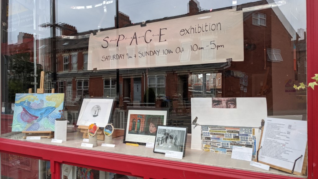 you can come in to view over 70 artworks by Artists, community members and under 16’s all on the theme of SPACE.