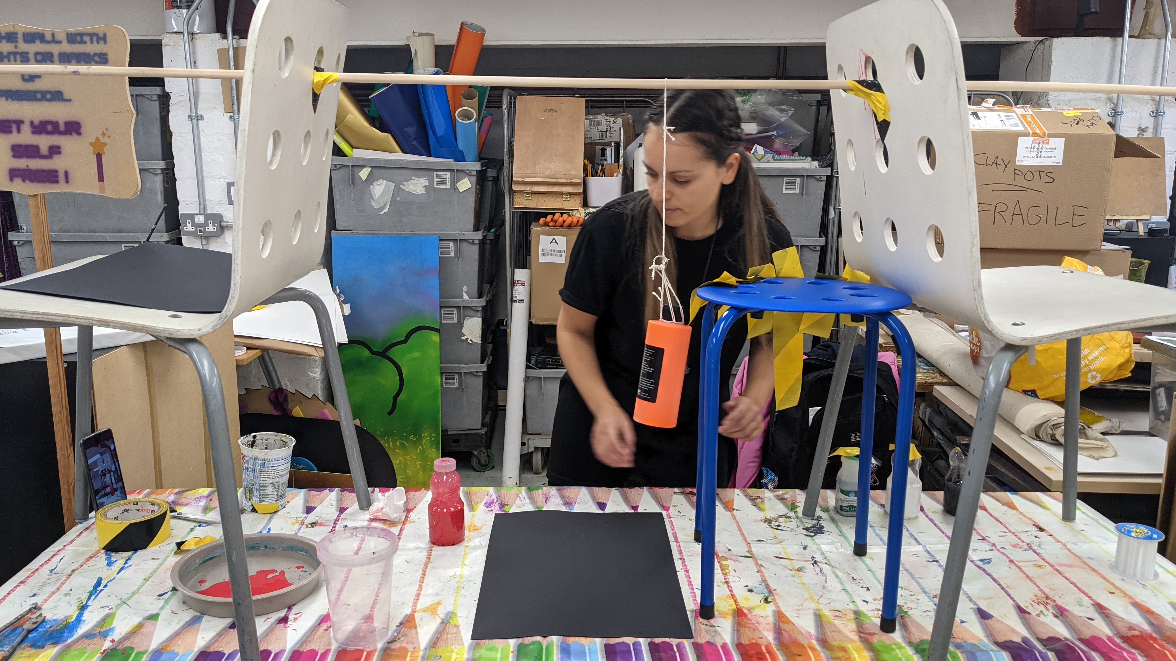 The first workshop was an interactive community project using a natural weaving loom and the second activity was a swinging pendulum painting community engagement. This experience was very worthwhile for me first and foremost for the human exchange, I had the opportunity to work with a larger audience and improve my confidence, and I also met a new community of artists with whom I will most likely collaborate in the near future, as well as re-collaborate with Lynda on a new project once funding has been secured.