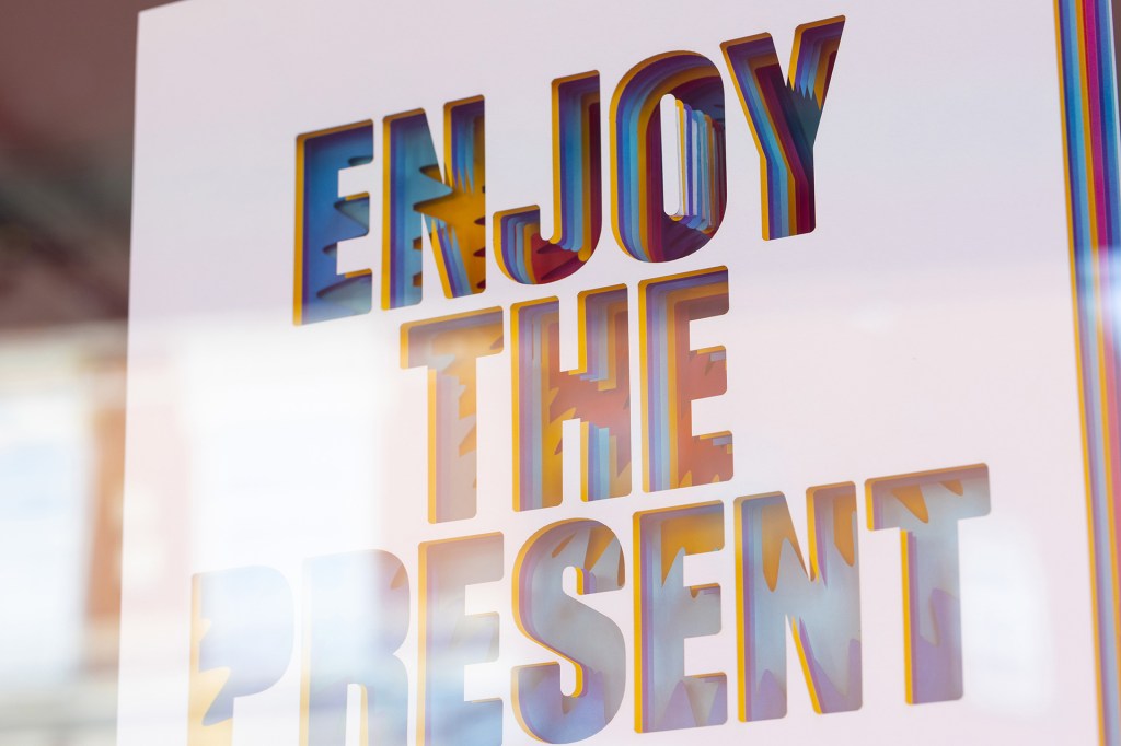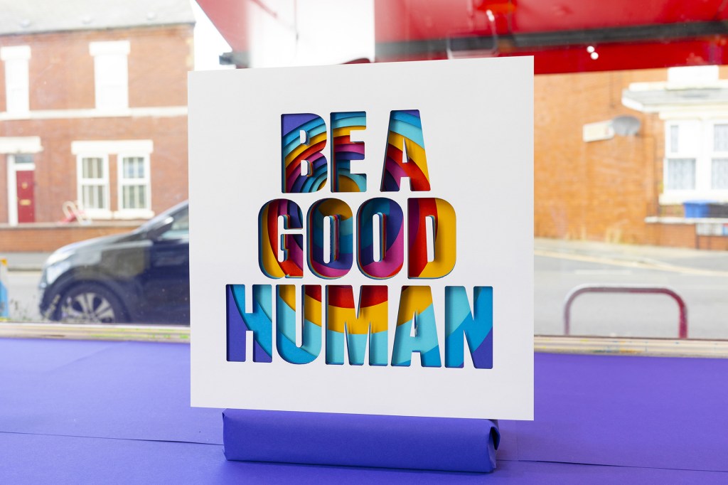 For this series he has taken some written notes from his phone (that were originally positive reminders to help him through the creative process) and turned them into pieces of art for anyone passing by to see.