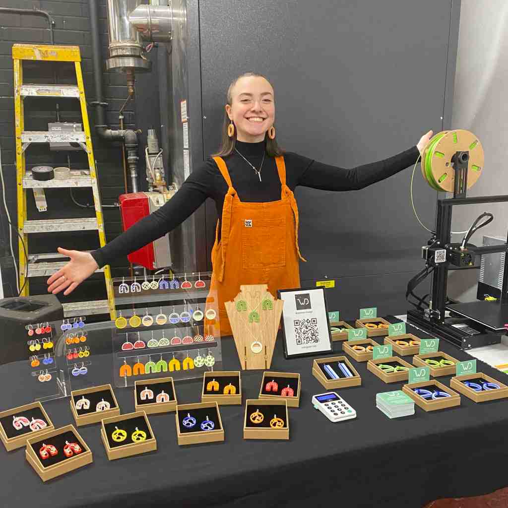 ‘Jamie-Lee creates vibrant, playful jewellery from recycled bioplastics and silver using 3D printing technology.’