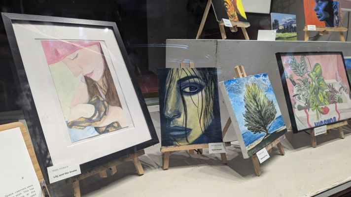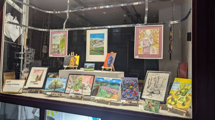 The work on display was created by students during Tuesday evening classes at OT Creative Space. Learners were given the theme of ‘A Vision of Beauty’ and encouraged to interpret this subject any way they wish. This has ranged from landscape, still life and portraiture. Some took an alternative approach, looking at the commodification of beauty or the idea of a voyeur gazing upon a vision of desire. Individuals have used watercolour, acrylic paint and chalk pastel to express themselves.