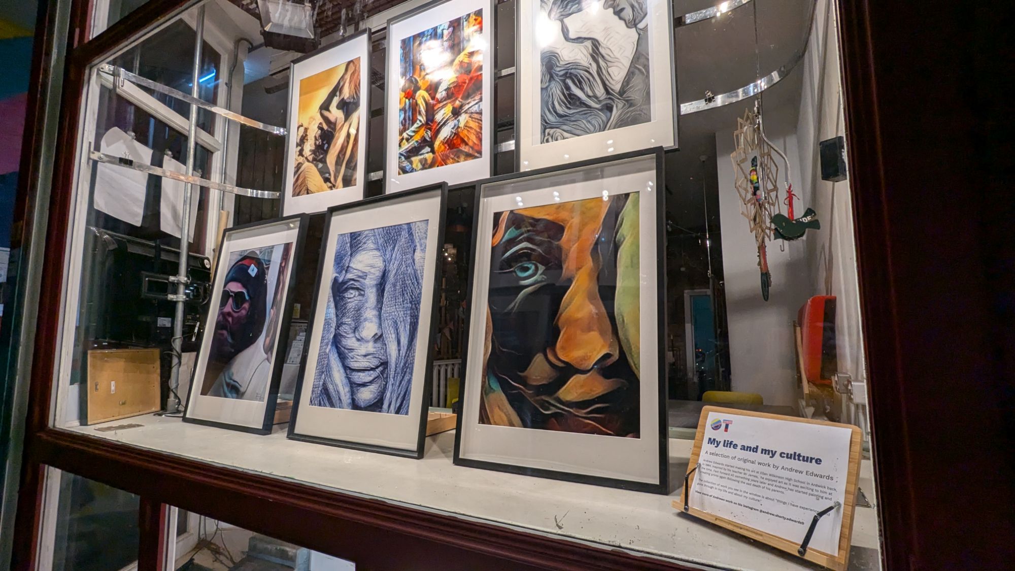 Andrew Edwards started making his art at Ellen Wilkinson High School in Ardwick back in 1984. Inspired by his teacher Mr James, he enjoyed art as it was exciting to him at the time. Fast forward 40 something years later and Andrew has started painting and creating prints again following the sad death of his parents.