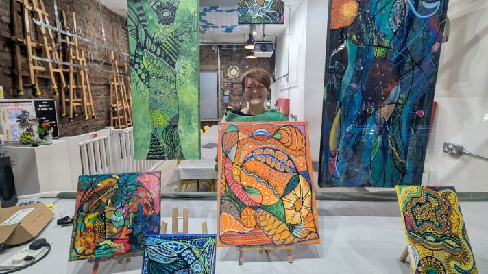 I never expected to become an artist at 48, but here I am—creating every day and loving it. After years of teaching, running a social enterprise focused on wellbeing, and helping others tell their stories, I picked up a brush in late summer 2024 and something just clicked. Creativity found me again, and I’ve been following where it leads ever since.