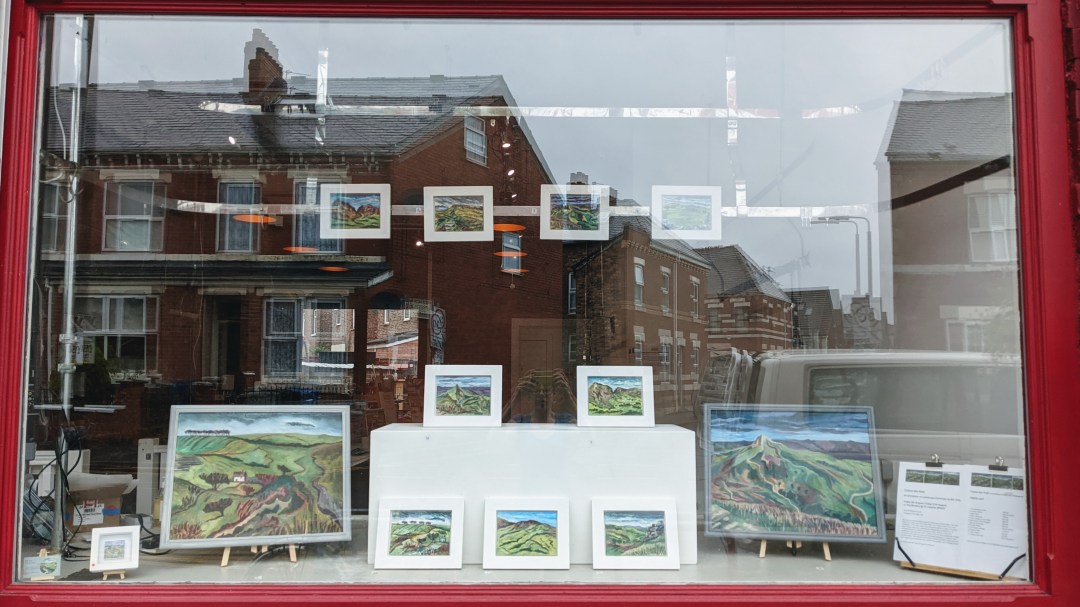 Currently on Display in the Window: A Selection of Paintings by Spencer Turner.