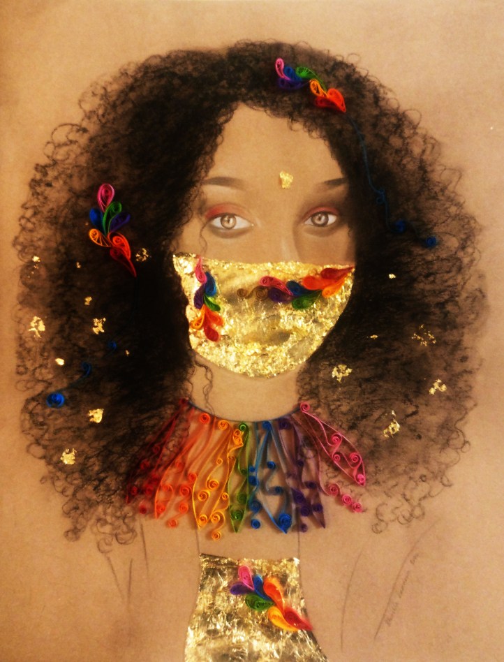 Sherrelle- The Golden Mask, Charcoal / mixed media on recycled paper