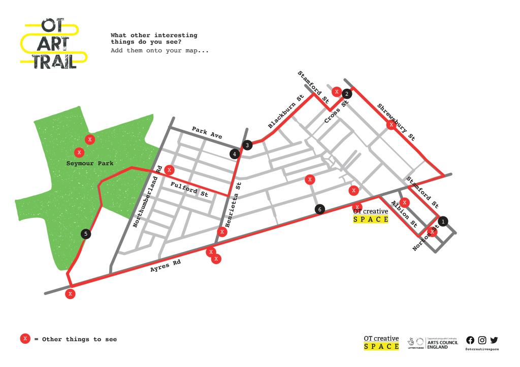 If you would like to have a go, download and print these pages to make your own mini booklet to help you navigate the OT art trail, find out about the different Artists and come up with your own ideas.