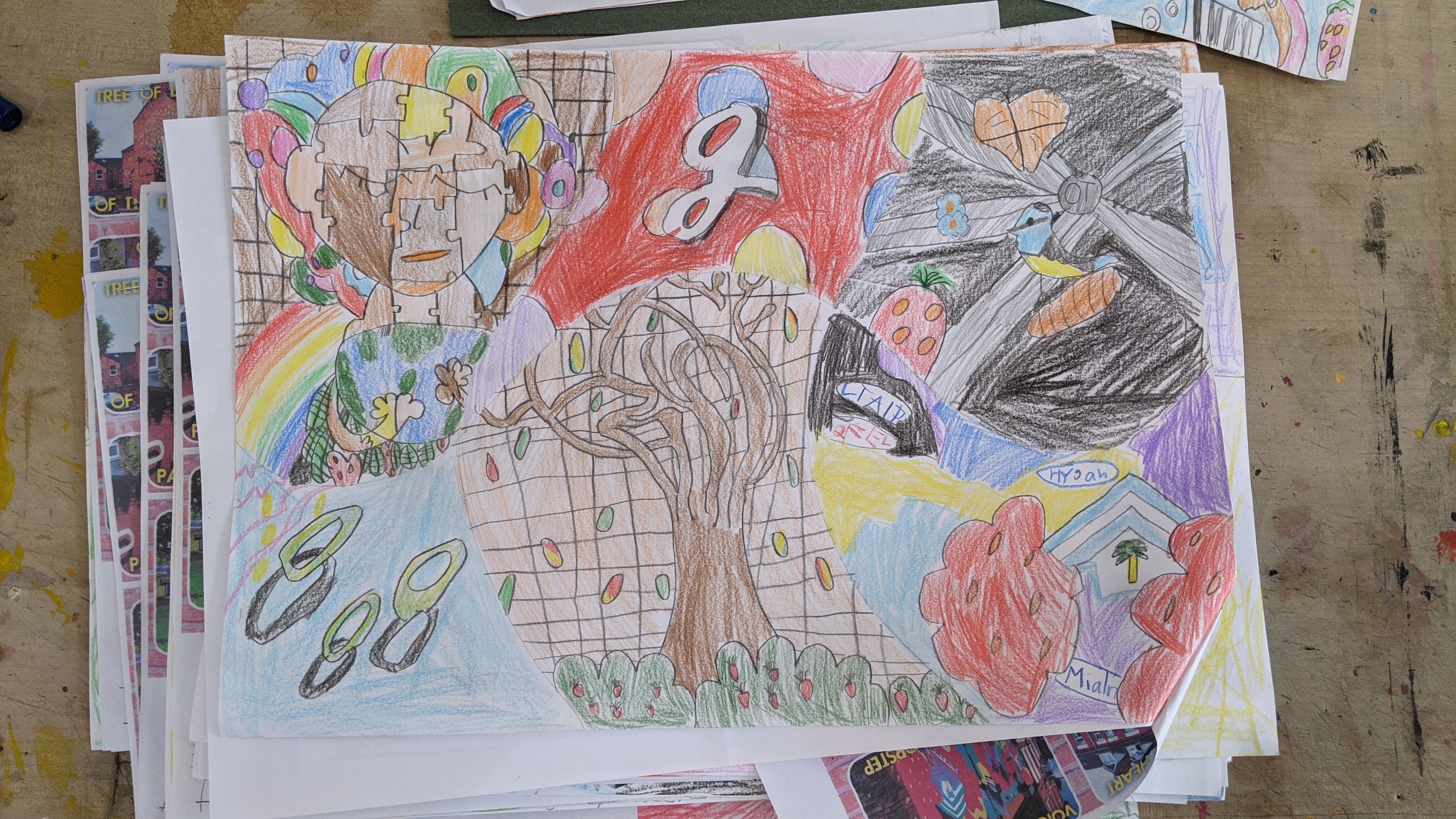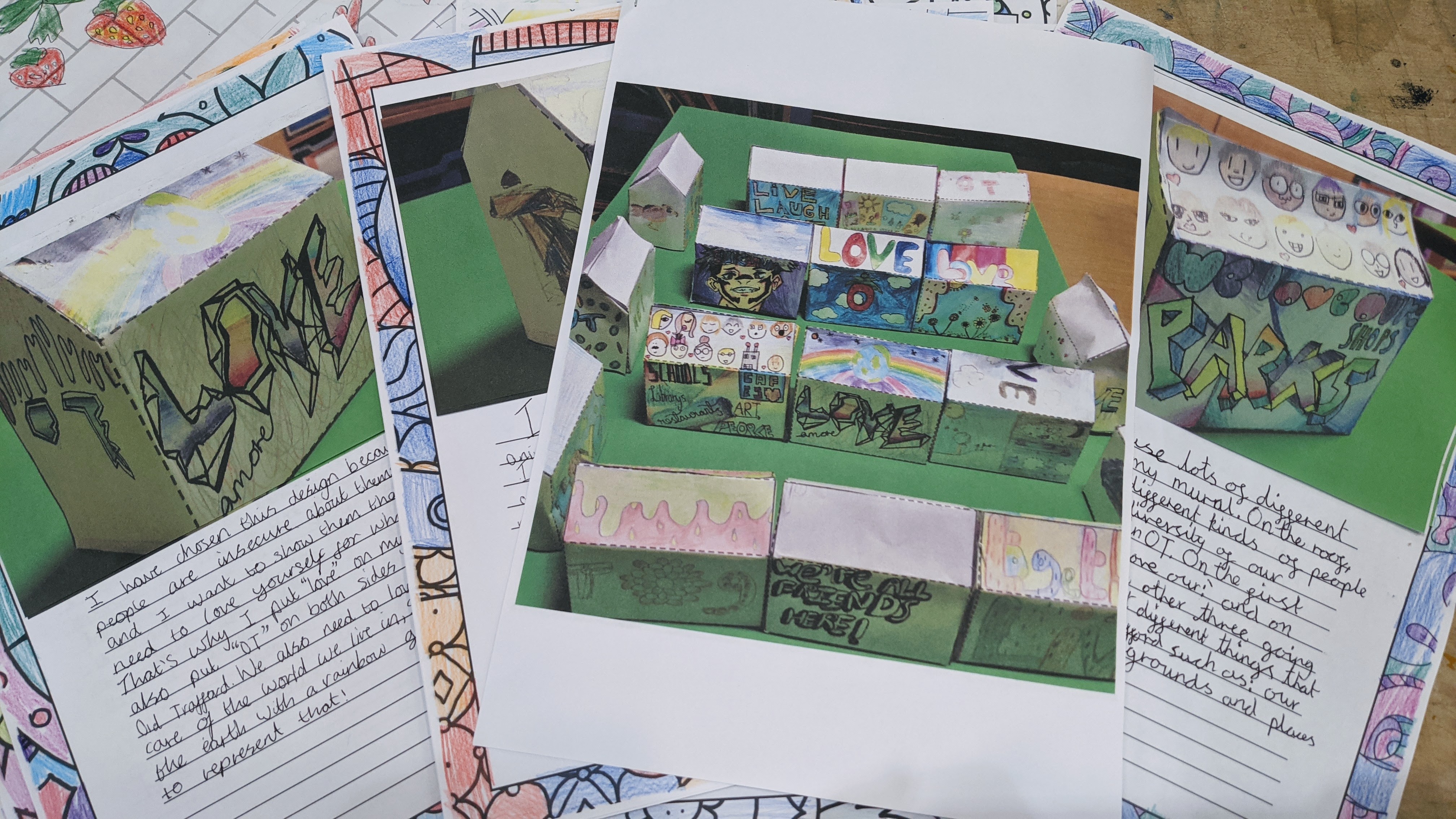 Some examples of work done by local school children to contribute to getting their Discover Arts Award.