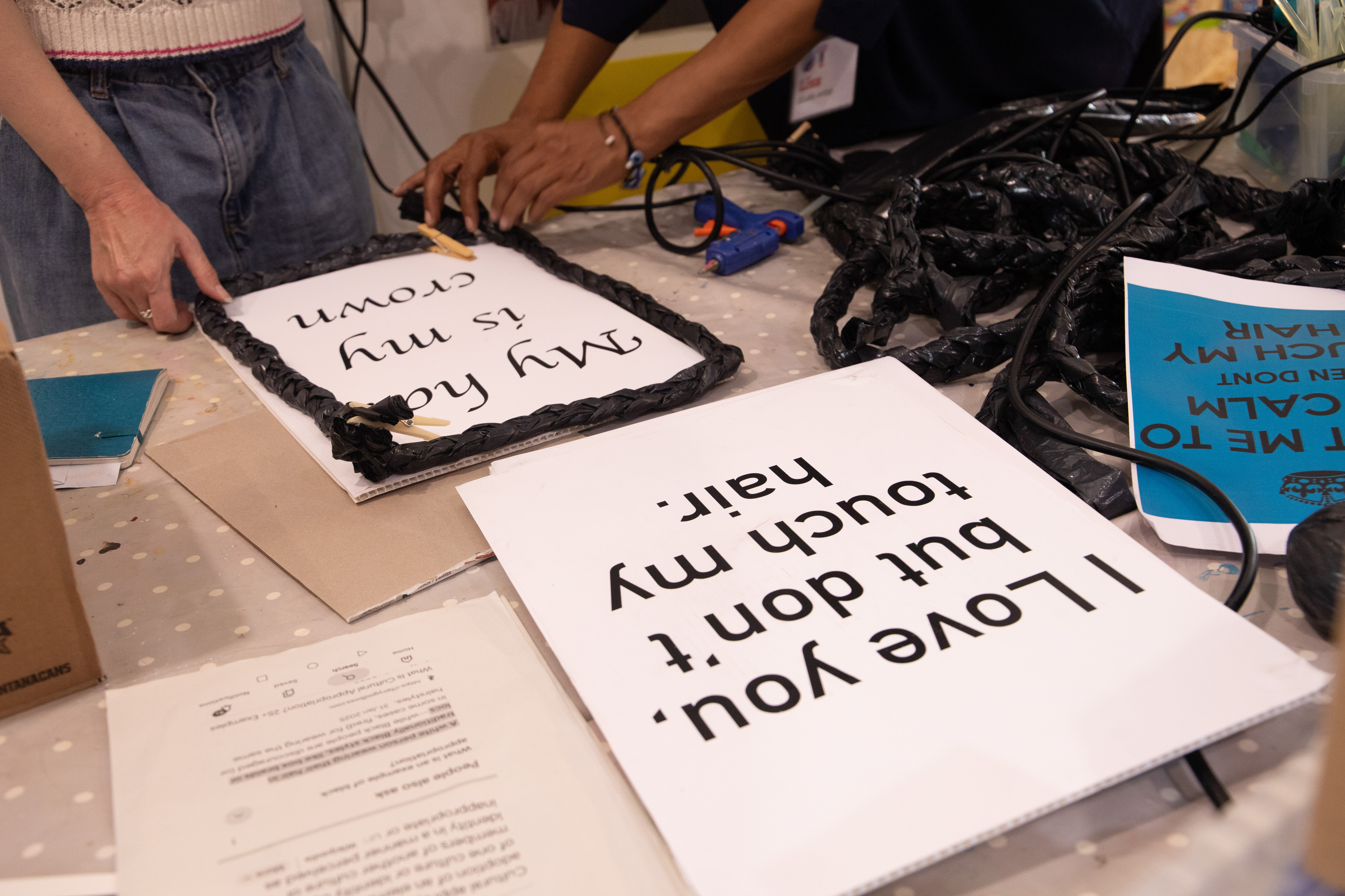 The installation explores how it feels when people reach out and touch without permission – an everyday ‘micro aggression’ experienced by many Black women that carries deeper emotional weight and cultural significance.