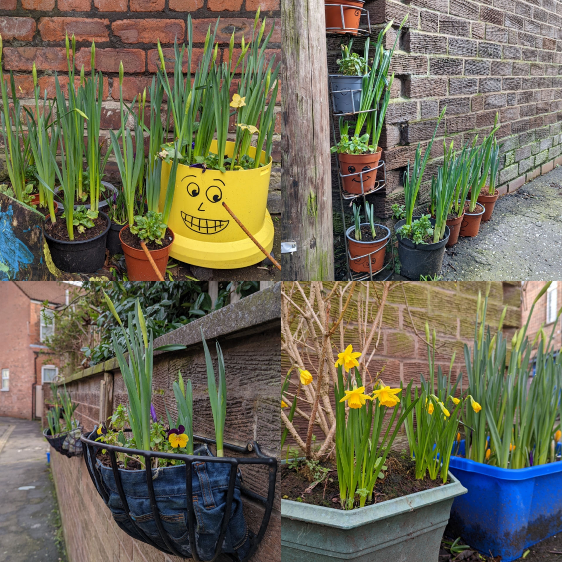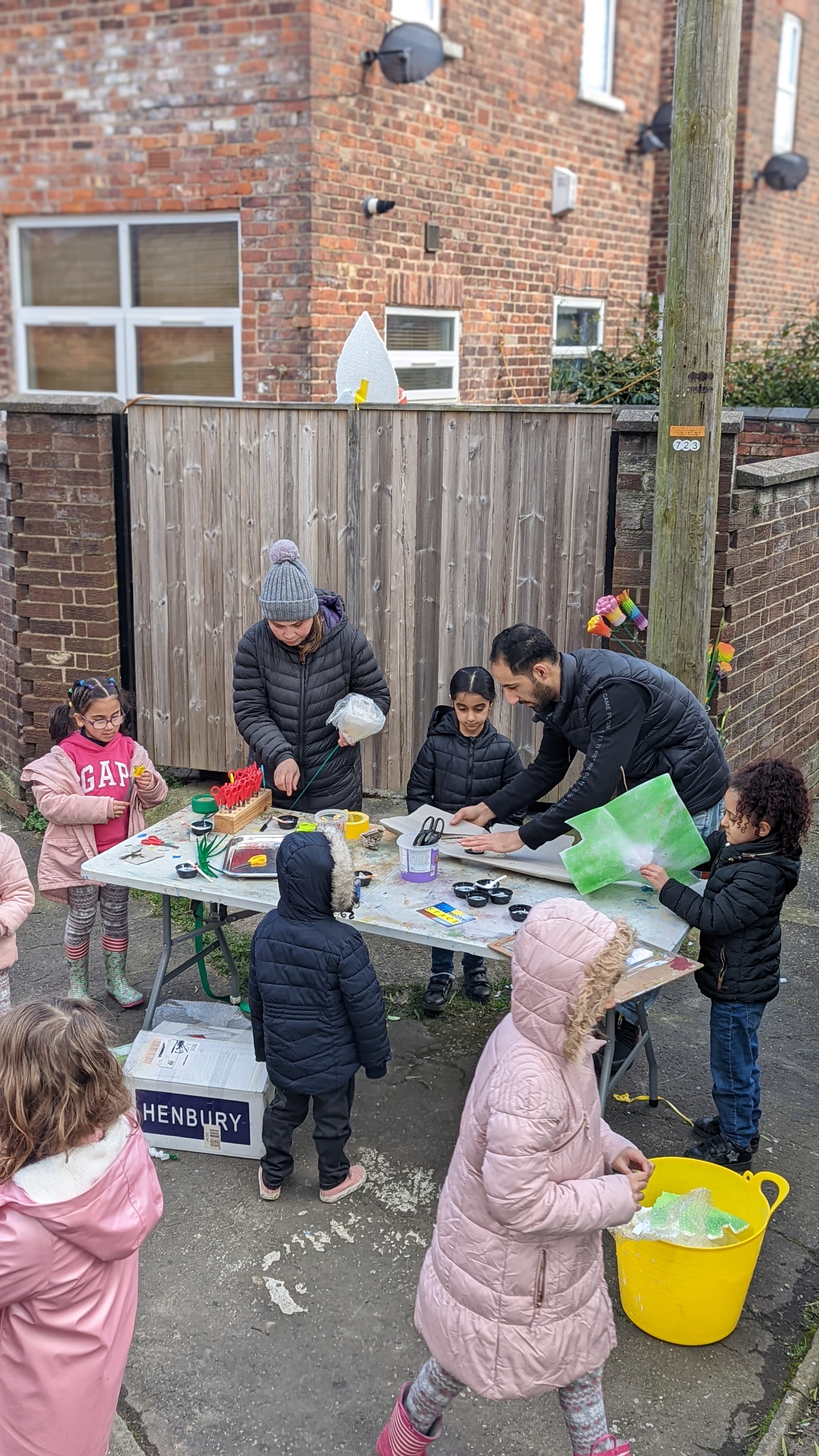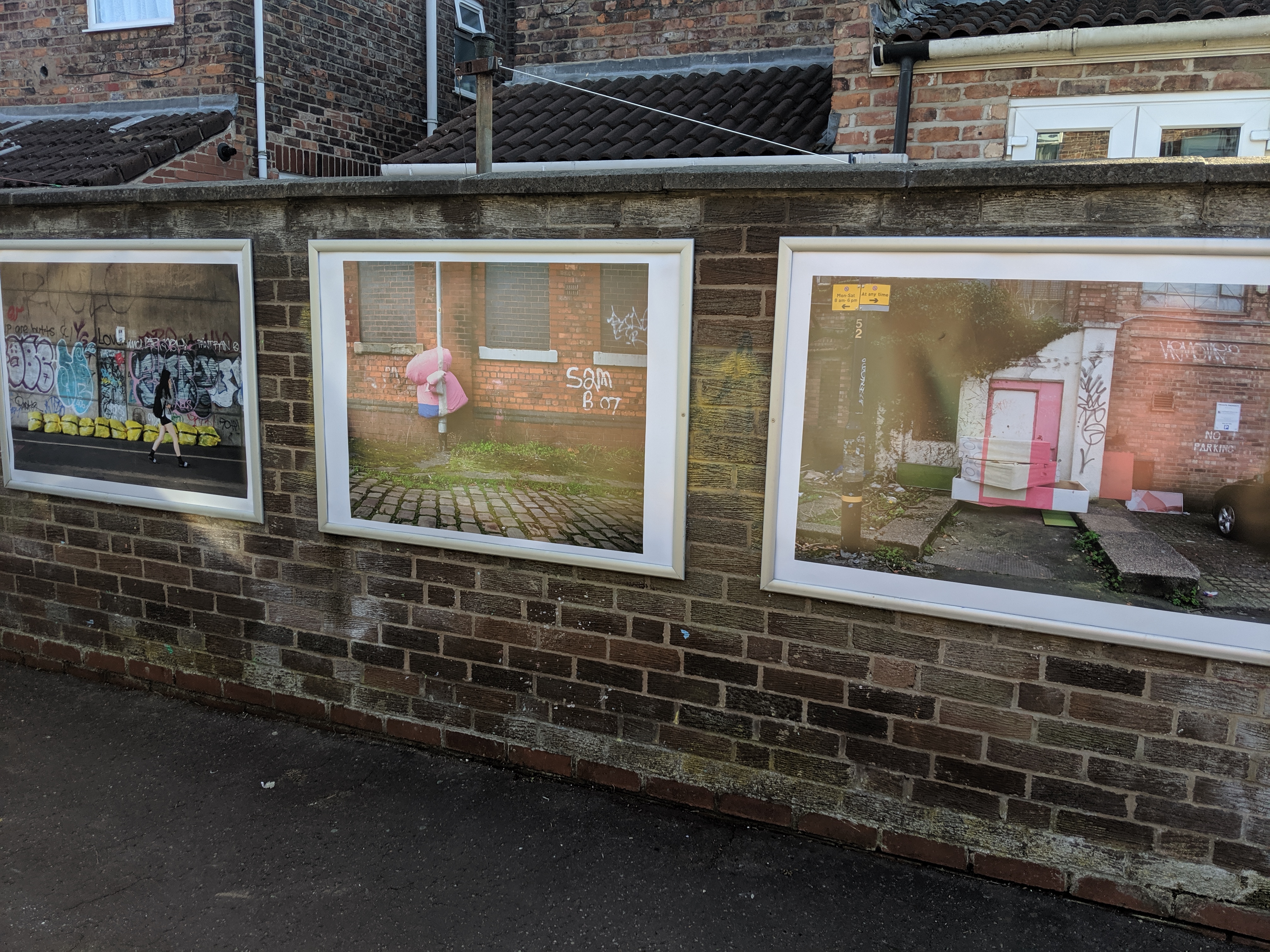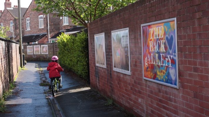 Set up in 2015 with just 3 art boards THE BACK gALLErY was created to combat fly tipping and Anti social behaviour and make an alleyway of Old Trafford a welcome space where the community can come together to view great artwork as well as join in monthly opportunities to create art together. It now spans across two alleyways behind OT creative space and exhibits different exhibitions by Artists. Currently on display is The Unity in Diversity peace wall, Art club prints and positive messages and Rubbish posters By St Alphonsus RC primary school exhibition
